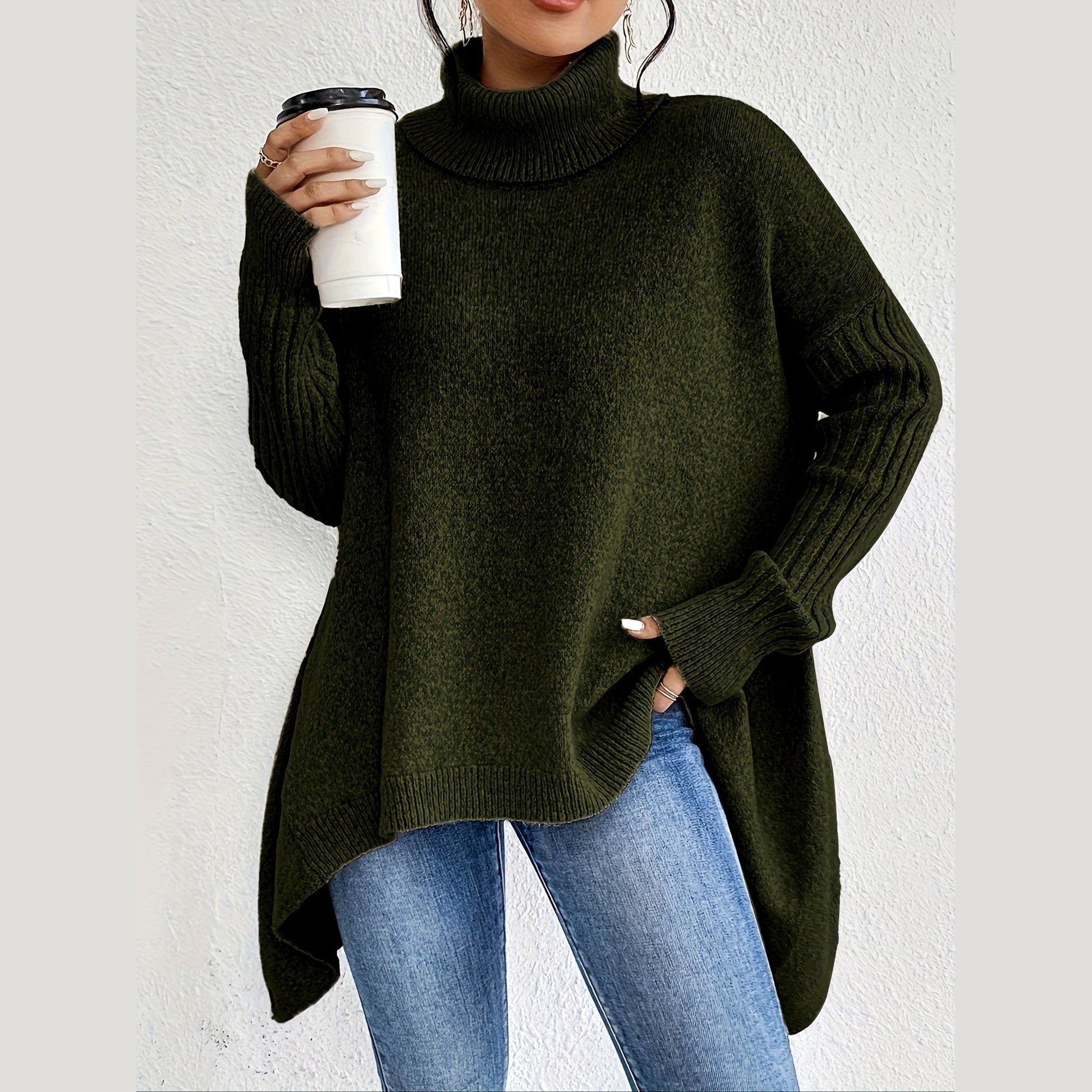 Elena | Asymmetric Turtleneck Maxi Knit Dress