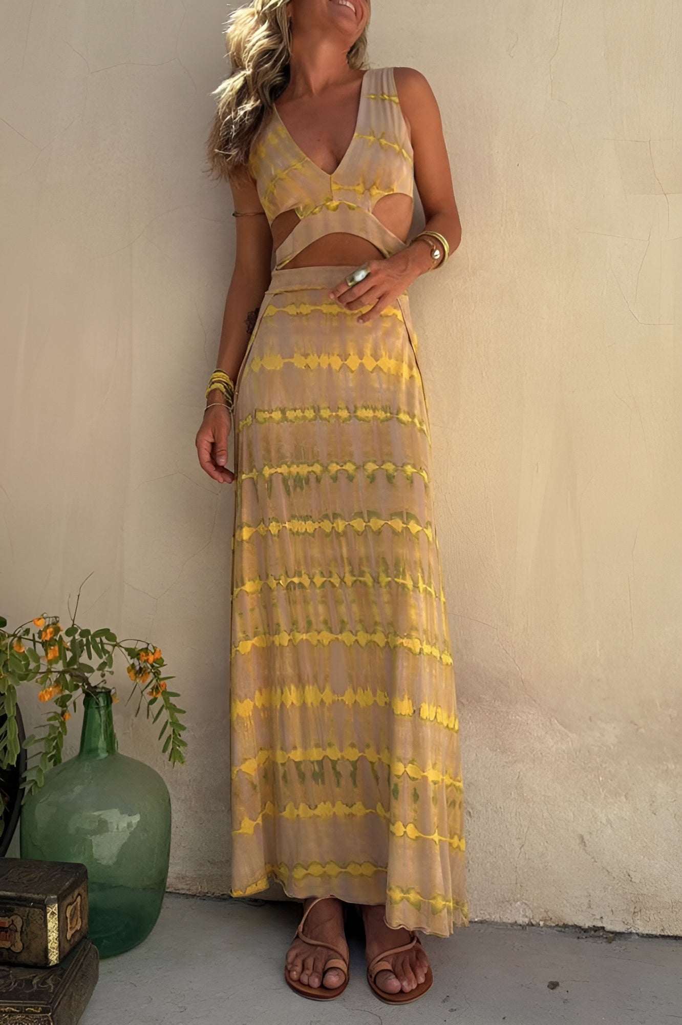 Introducing the Chloe Tie-dye Stretch Dress with Slit, a garment that blends contemporary fashion with eye-catching details. This dress features a vibrant tie-dye print that adds a dynamic touch to your wardrobe, while the cut-out design offers a modern twist, showing just the right amount of skin. The stretch fabric ensures a flattering, body-hugging fit that moves with you, providing both comfort and style. The bold slit adds an extra element of allure, making this dress perfect for turning heads at any event or night out.
