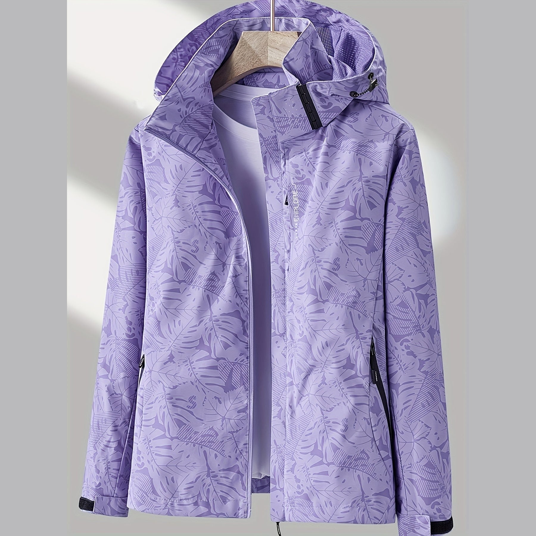 The Lightweight Waterproof Jacket combines modern style with practical comfort, designed for women who love to stay active without compromising elegance. Featuring a soft lilac hue with a subtle botanical pattern, it offers a refreshing twist to your outdoor wardrobe. Its windproof and water-resistant fabric keeps you dry and comfortable, while the adjustable hood and full zip closure ensure versatility through every season.