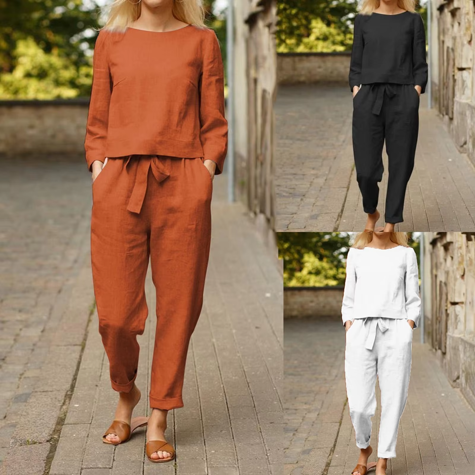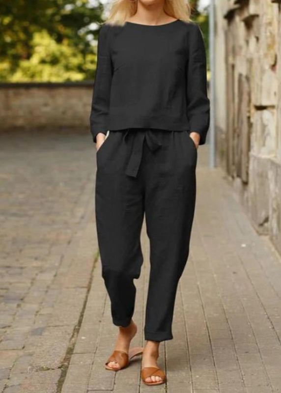 Comfortable Summer Set – the perfect choice for women seeking both comfort and elegance. Crafted from premium cotton and linen fabric, Summer Set is luxuriously soft and breathable. This set embodies a timeless, understated style that flatters the feminine silhouette. The round neckline and long sleeves add a sophisticated touch.
