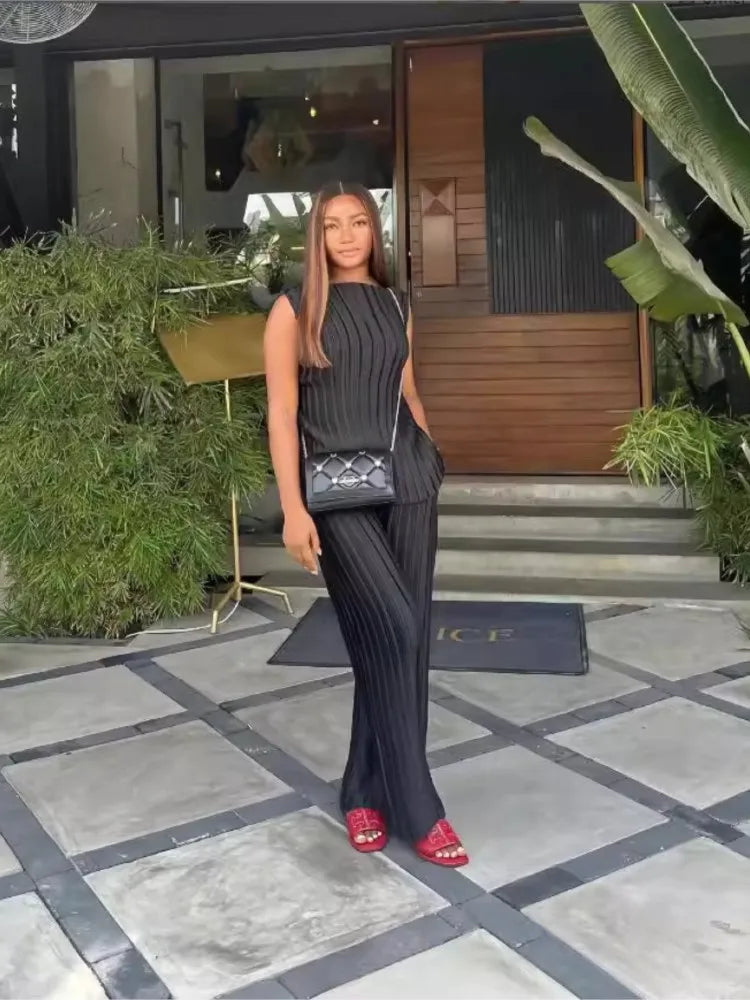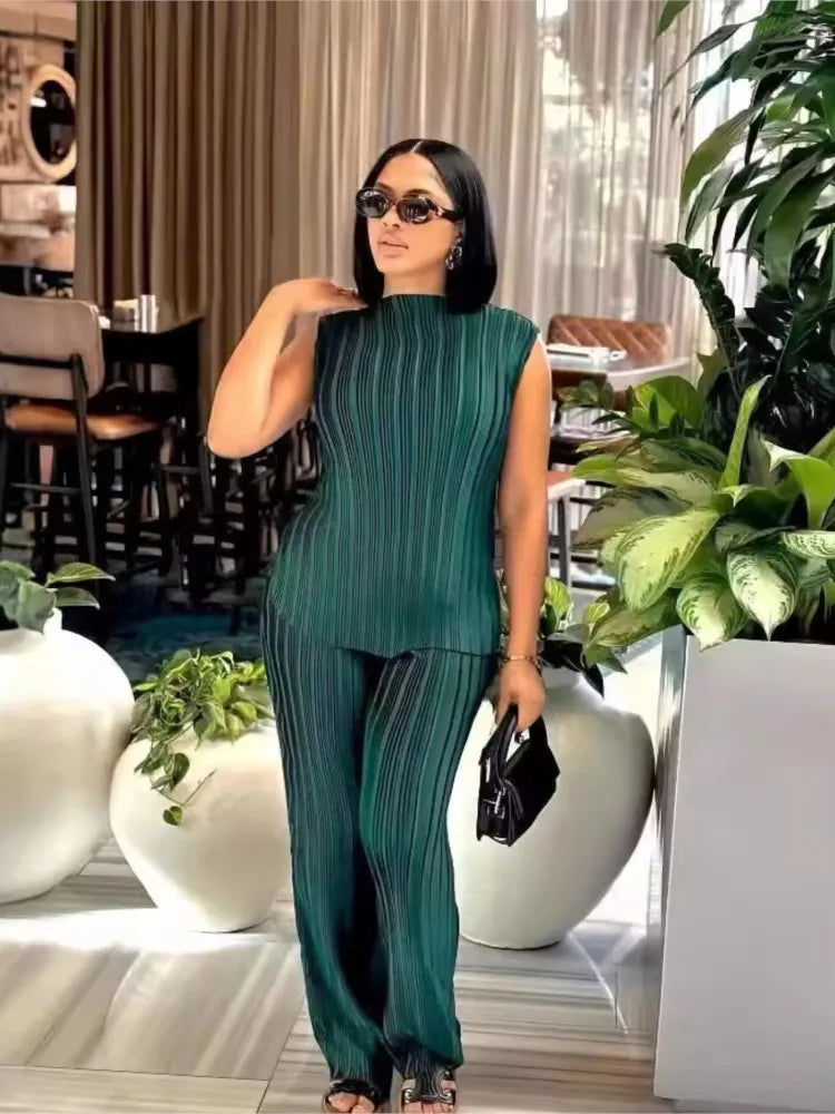Step into sunshine with the Ellie™ Stylish Summer Set – a chic and versatile two-piece outfit designed for modern women who value both style and ease. Featuring a sleeveless O-neck top with soft fold detailing and wide-leg trousers, this set delivers a clean, flattering silhouette that flows with every move.