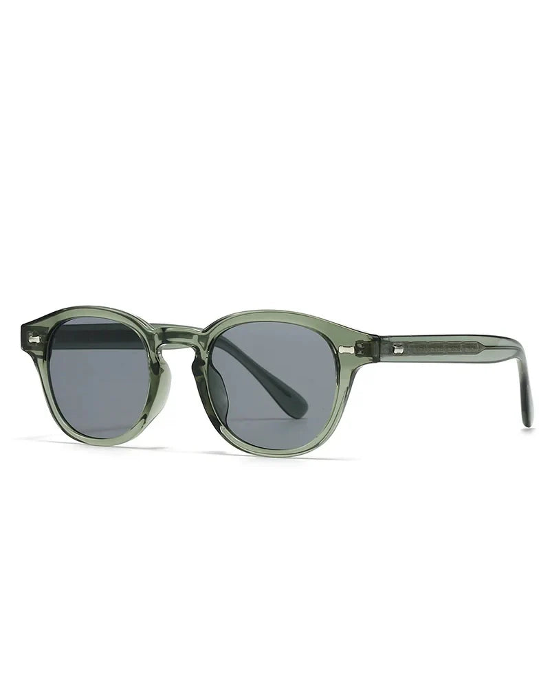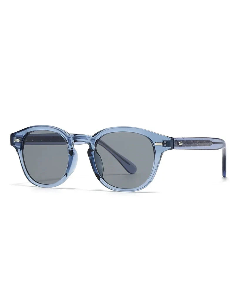 Balancing vintage refinement with modern clarity, these round sunglasses feature a minimalist silhouette and subtle metallic accents embedded in the frame.