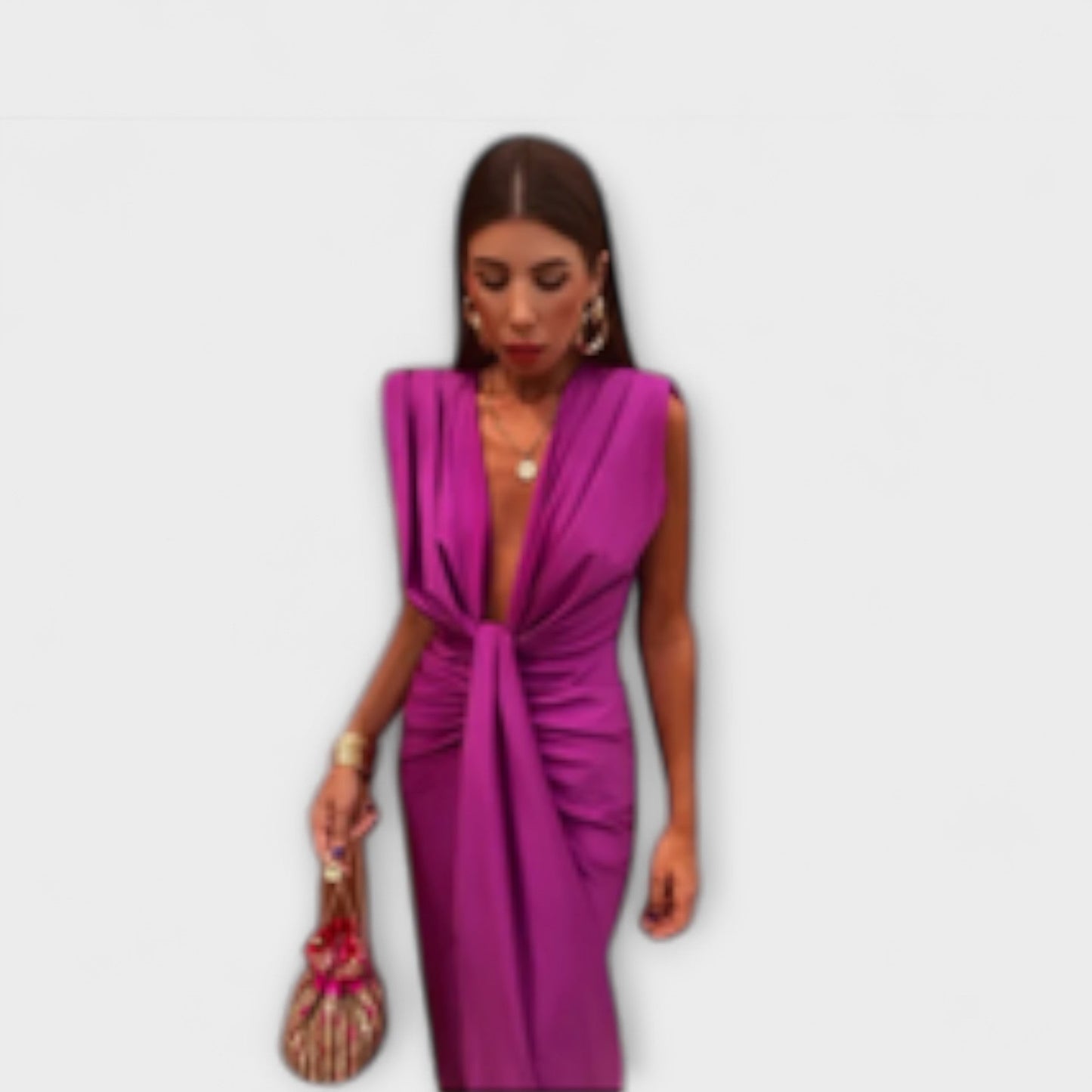 Make an Immediate Impact with the Crocetta Dress, designed for those who know how to stand out. This stunning piece features a deep neckline and bold draping that celebrates every curve, ensuring you feel confident and powerful.