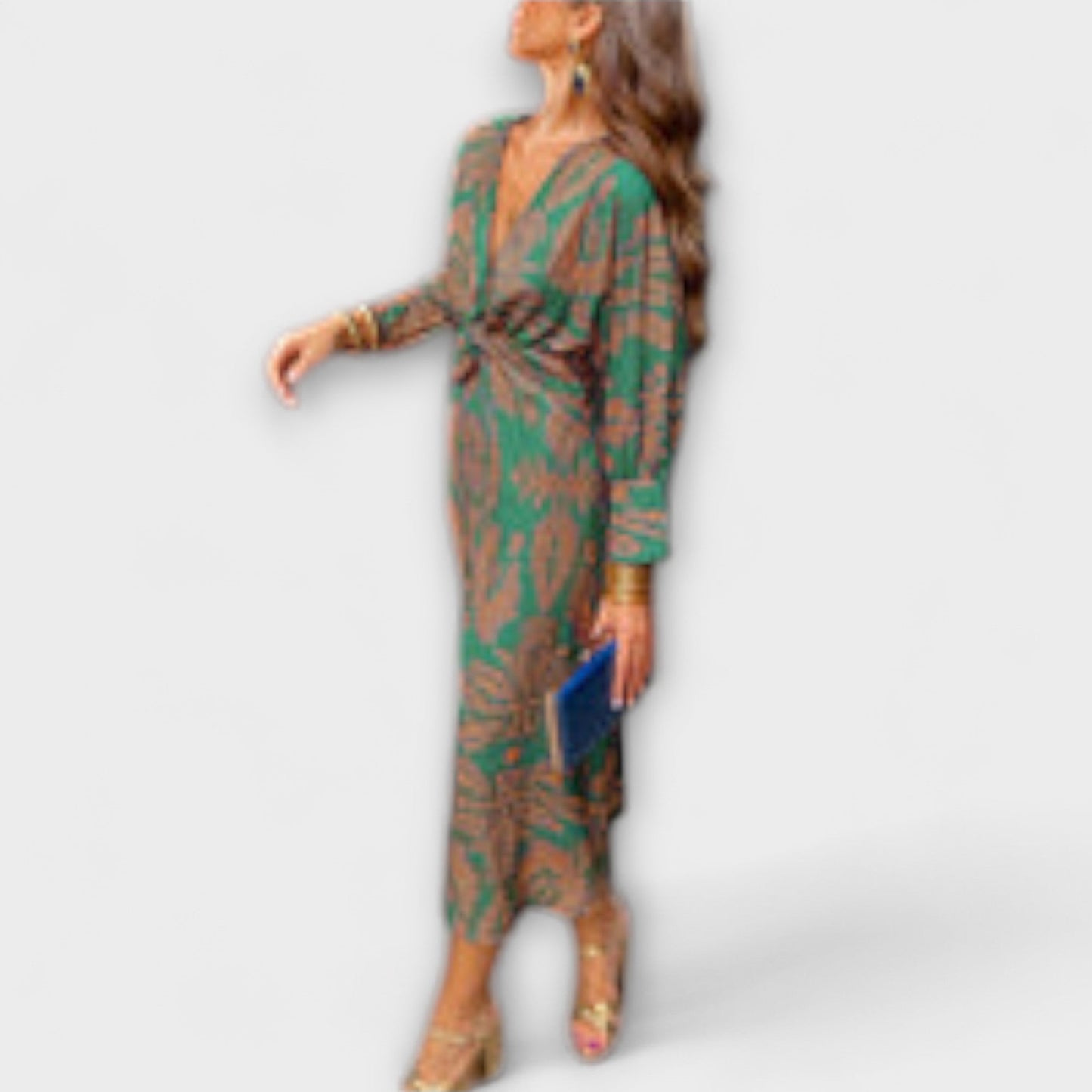 This stunning dress is crafted for those who wish to make a statement without compromising on sophistication. The exquisite print and flowing silhouette strike the perfect balance between femininity and presence.
