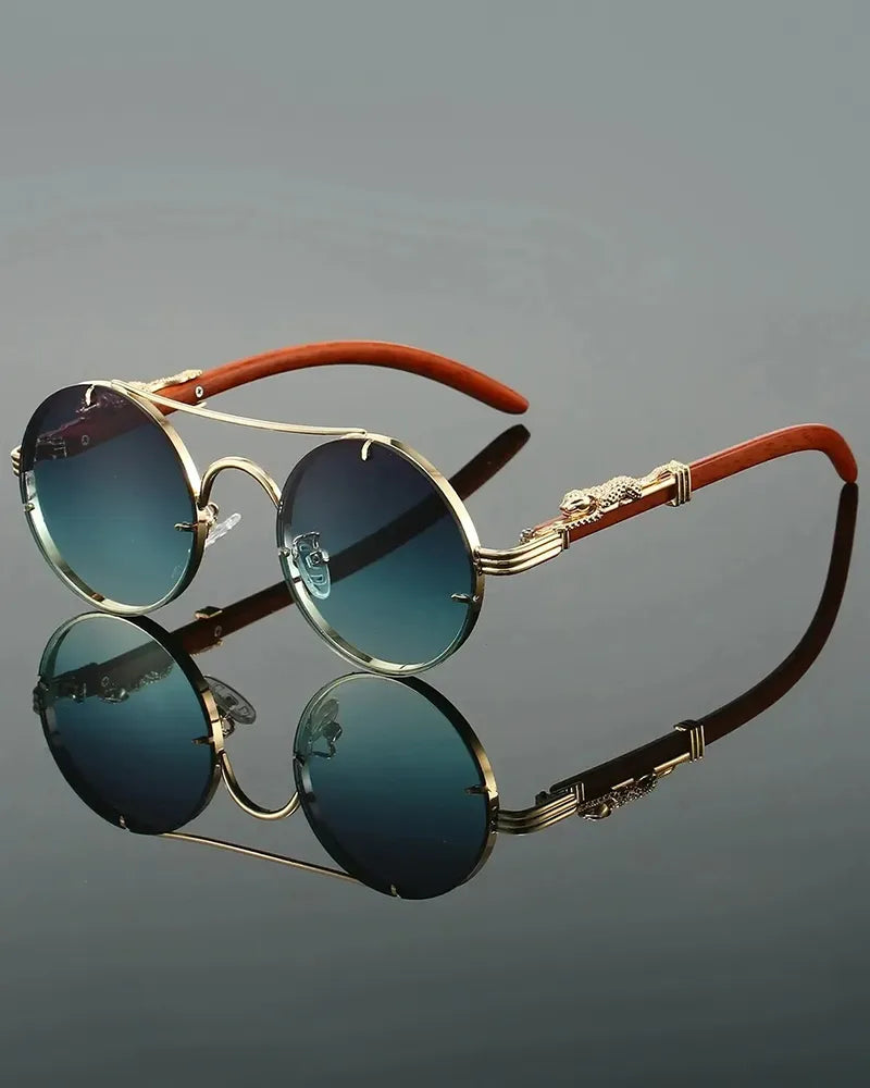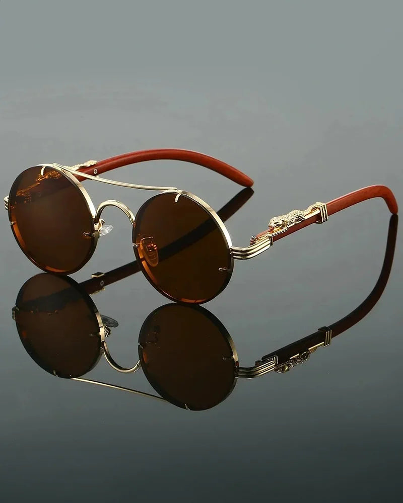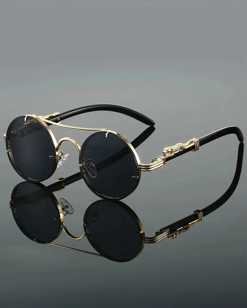 Distinctive round sunglasses with intricate detailing and a strong presence, merging heritage craftsmanship with modern edge.