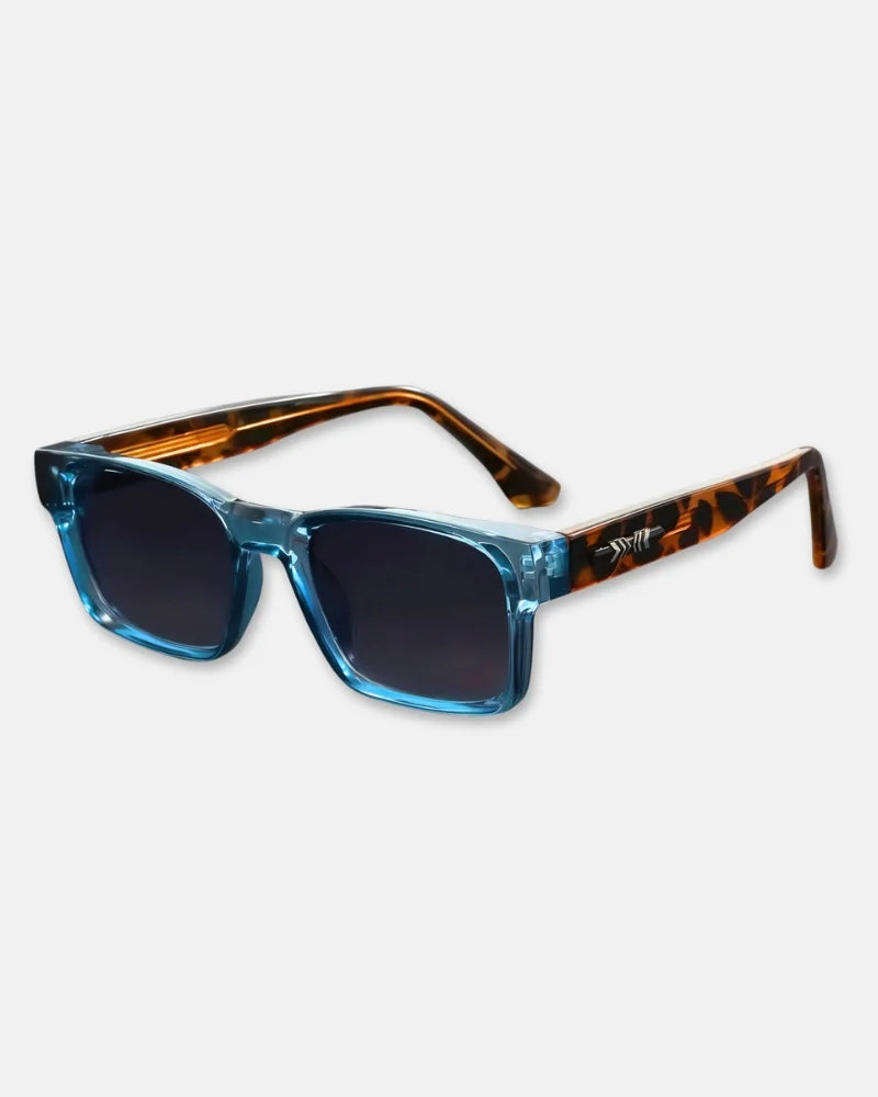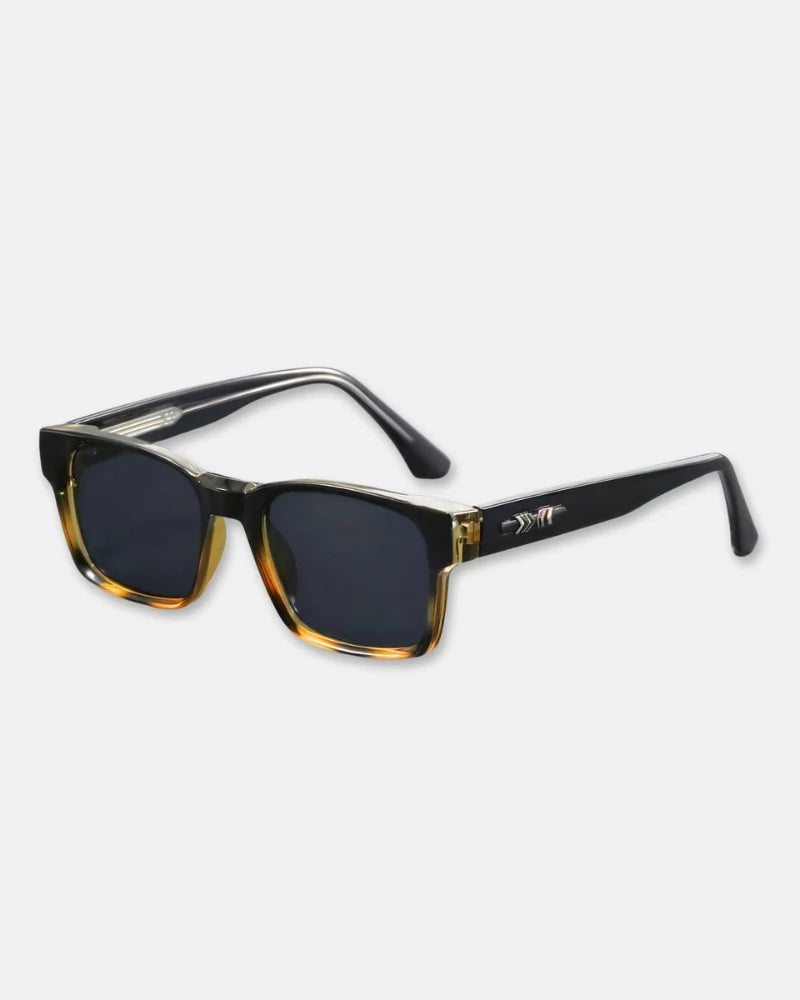 Bold square frame with a structured build, engineered for impact with a timeless edge.